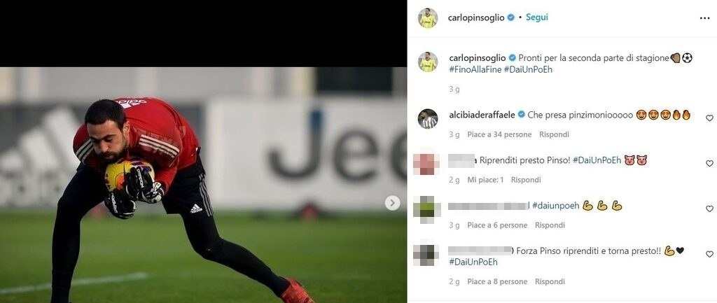 Ecco lo screen, preso dal profilo Instagram di Carlo Pinsoglio, in cui Alcibiade ripropone in un commento il soprannome dato al suo ex compagno di squadra.