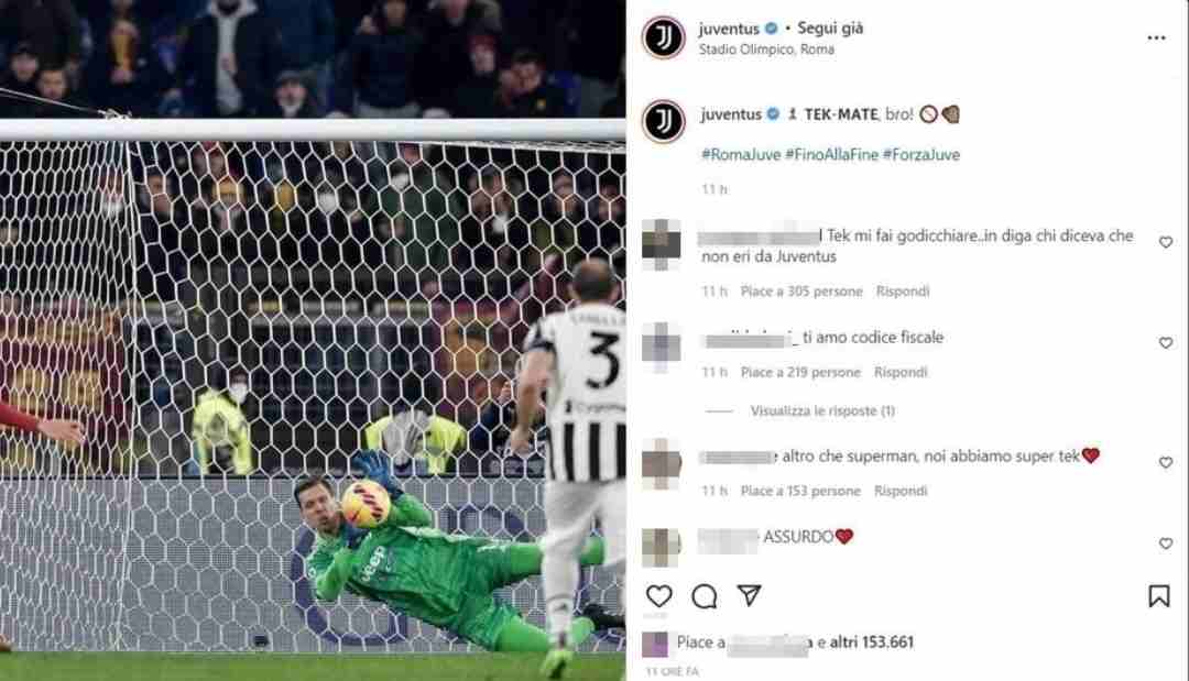 Ecco lo screen del post, preso dal profilo Instagram della Juventus, in cui si può notare come tra Szczesny e i tifosi bianconeri sia tornato il sereno
